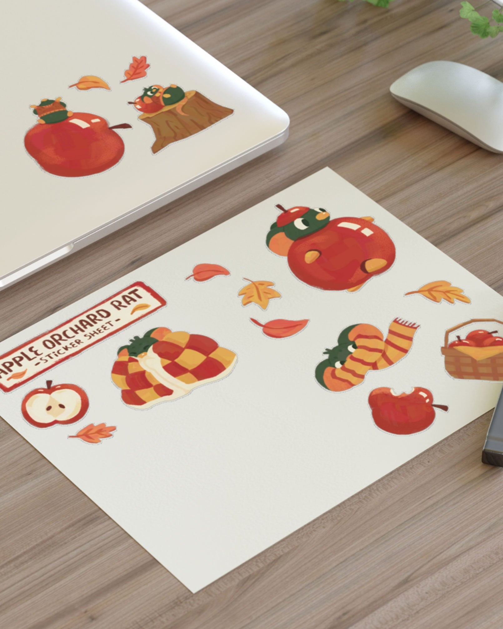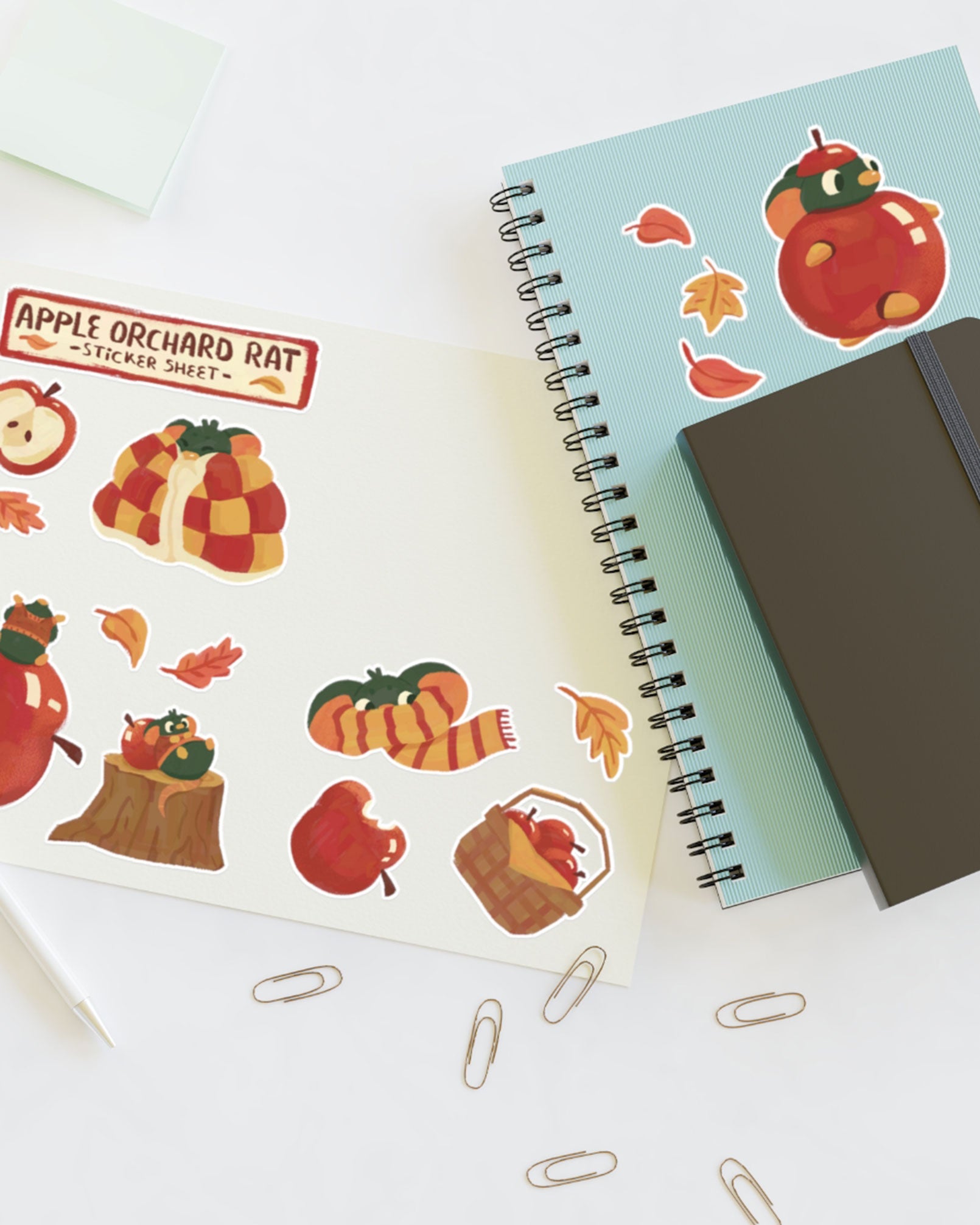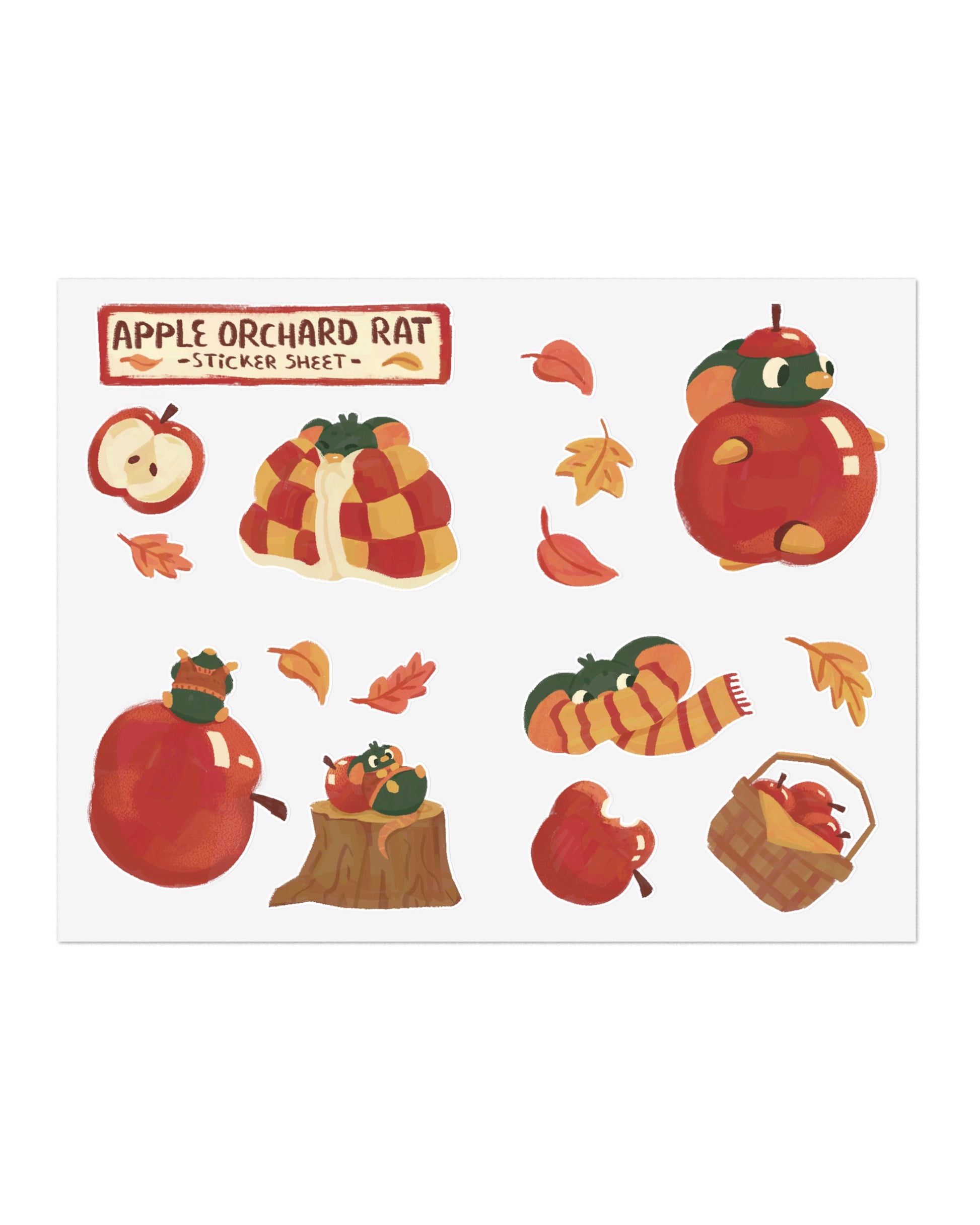 A fall themed sticker sheet featuring the Apple Orchard Rat 🐭🍎